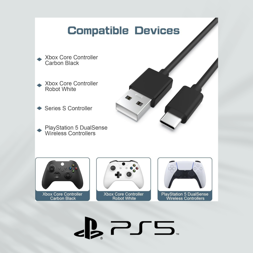 سلك شاحن يد تحكم بلايستيشن 5 ( تجاري ) جديد يدعم يدات تحكم ( PS5 ) فقط بجودة ممتازة